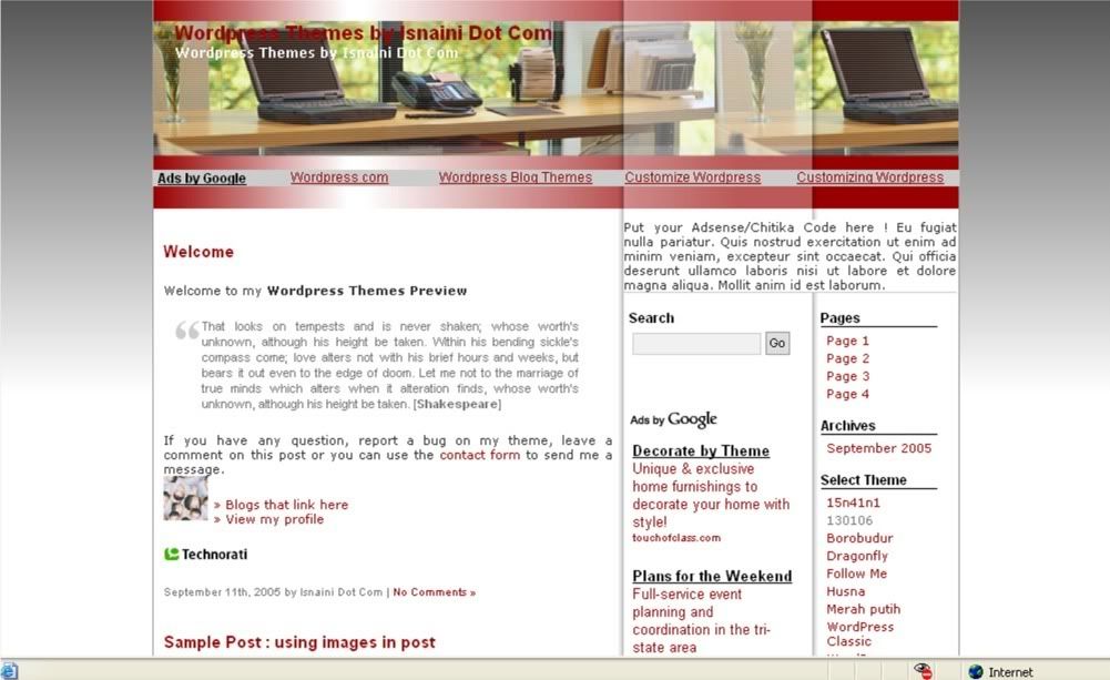 When planning and laying out your blog, it is important to think ahead, not only in terms of "look", "Feel", and "Seo Optimization", but also "Adsense Optimization". But I am sure you already know that, and so do the creators who dreamed up these themes and optimized them for you. The following themes offer distinctive ad placement spots that blend in well with the rest of the theme. Something I know many people look for and do.
